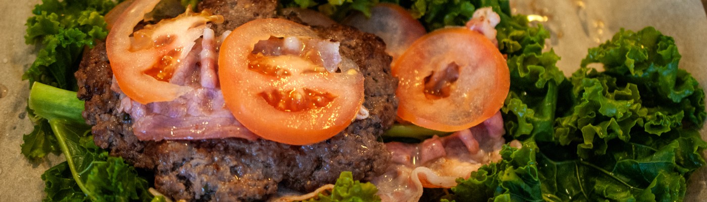 Lehtikaalihampurilaiseen sopii mainiosti pekoni, tomaatti ja kurkku ja juomaksi käy vesi.